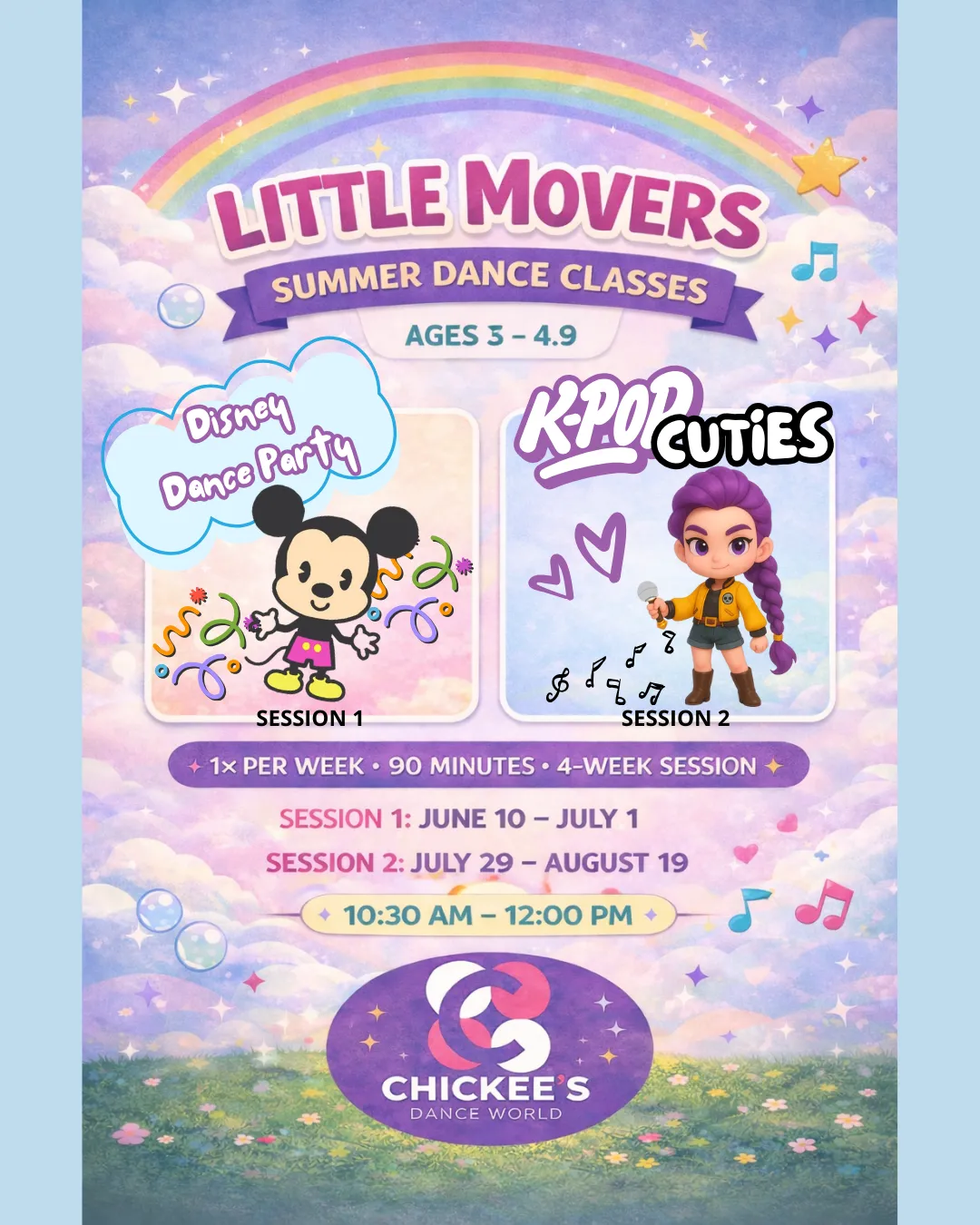 Little Movers offers preschool-aged dancers a fun, structured summer experience that blends creativity, confidence-building, and foundational dance skills through exciting, kid-favorite themes.