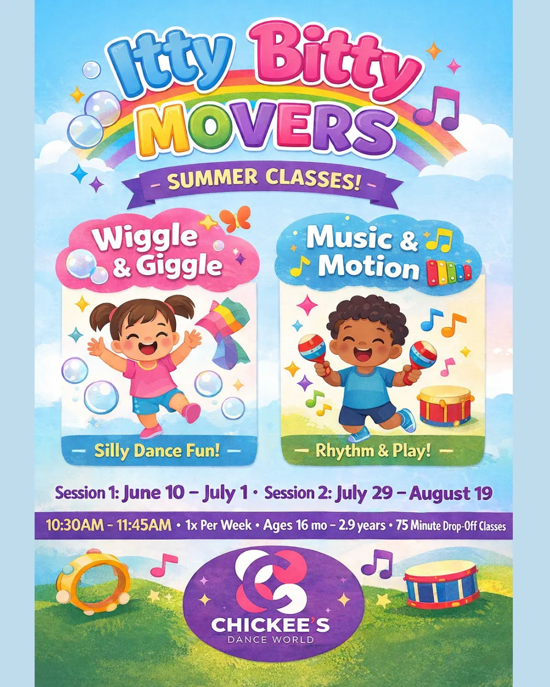 Our Itty Bitty Movers sessions are designed as gentle, joyful introductions to dance for our youngest movers, with consistent routines and playful exploration in a safe, nurturing environment.